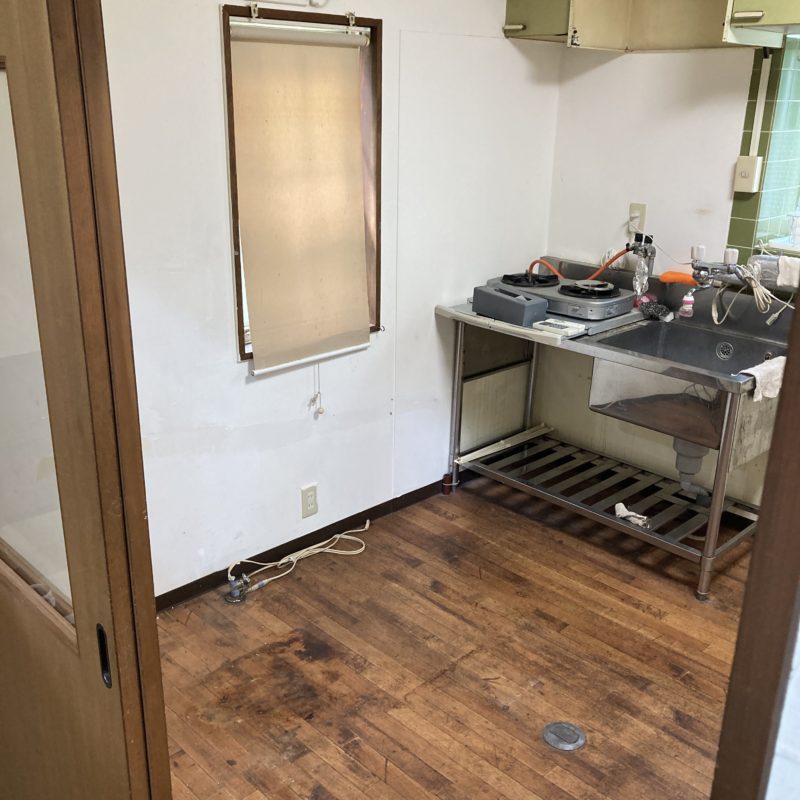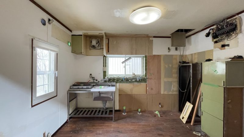 床、壁、老朽化した設備を取り外し、使えるものは再利用しています。